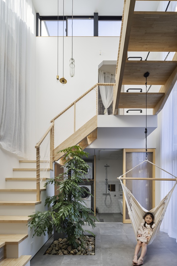 家の中に設けたこの空間が、上部から光を取り込み、住まい全体に明るさと広がりをもたらします。